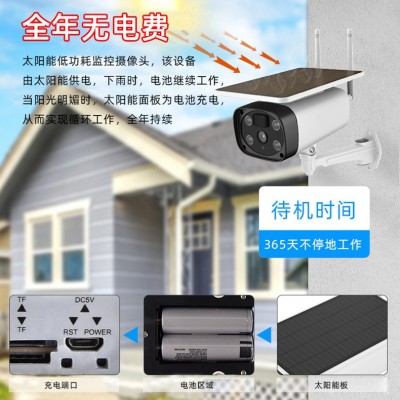 戶外太陽能低功耗無線監控攝像頭室外wifi高清2K監視器電池攝像機