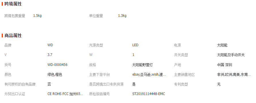 產品規格參數