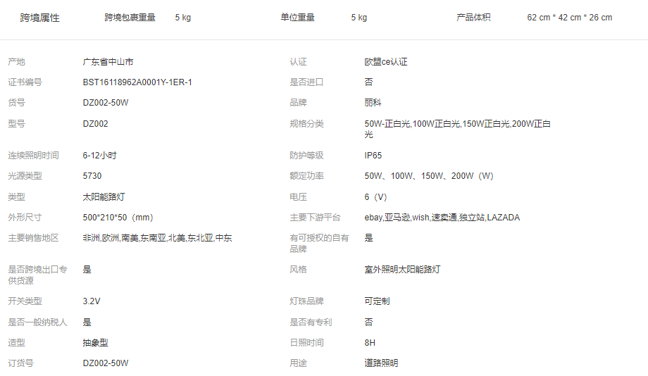 3.跨境參數(shù)頁面為50W的參數(shù)。