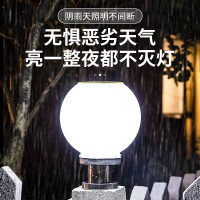 太陽能柱頭燈LED戶外路燈圍墻庭院門柱圓燈家用防水亞克力球形燈