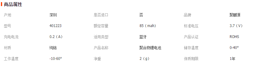 額定容量:85mAh