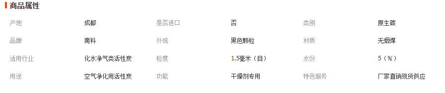 外觀為黑色圓柱形,選用優質煤、木料,經破碎、磨粉、混捏、成型、炭化及活化等工序制成。具有機械強度高、形狀規整、粒度均勻、比表面積大的特點,且大孔、中孔、微孔、數量適當,吸附速度快、床層阻力小,并易于再生。