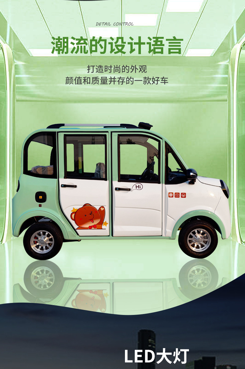 小型女士轎車全封閉家用電動四輪車老年代步車油電兩用老頭樂