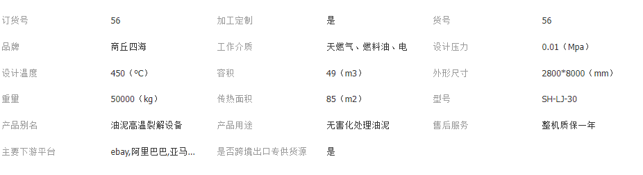 該設備工藝采用常壓半智能化連續式或間歇裂解法處理方式,改變了傳統的生產工藝,徹底解決了二次污染,機械化常溫、常壓進料,低溫防塵自動出渣(100℃以下)。該設備可采用多種方法加熱(如:煤、氣、油、電等加熱方式)。物料通過高溫裂解可形成連續生產,由于該工藝中溫度、壓力、加熱爐(燃油或燃氣)采用了全智能化控制。生產壓力常壓設計,設計配有壓力智能控制,超出設定壓力0.03MPa時,會自動泄壓并發出報警提醒。臥式旋轉裂解釜材質選用優質316L不銹鋼等鋼材,抗氧化能力強,大大延長了其使用壽命。設備機械傳動選用大齒輪并配用500型減速機,直徑400mm托輪,使裂解釜在生產過程中運動潤滑平穩,輕松應對HW-08;HW-09各種油泥廢乳化液。煙氣排放采用兩級脫硫除塵,確保生產中的二次污染得到解決。