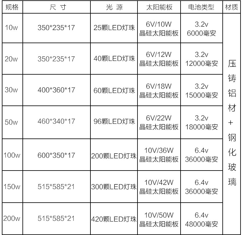 | 功率 | 5米太陽能路燈全套,6米太陽能路燈全套,7米太陽能路燈全套,8米太陽能路燈全套,9米太陽能路燈全套,10米太陽能路燈全套 |