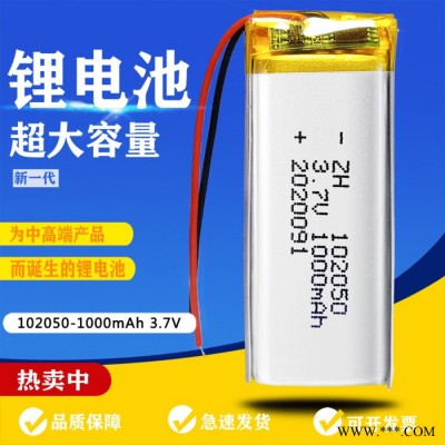 涵鷹廠家直供102050聚合物鋰電池1000mAh麥克風(fēng)K歌寶美容儀充電電池鋰離子電池聚合物電池