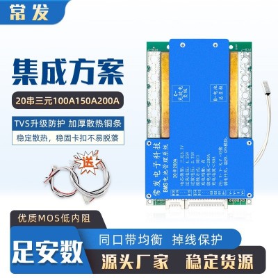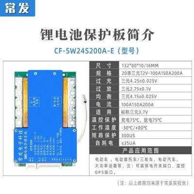 >熱門供應(yīng)>鋰電池與儲(chǔ)能設(shè)備>鋰電池>三元鋰電池>常發(fā) 20串72V三元保護(hù)板大單體鋰電池BMS200A 同口均衡溫控足電流 主營(yíng): 電池配件